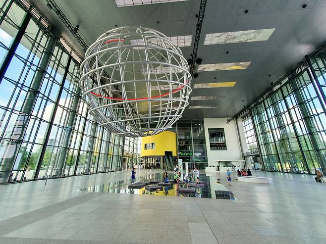 이처럼 다양한 즐길 거리가 있는 아우토슈타트는 매표소가 있는 콘체른 포럼(그룹 포럼) 건물에서부터 시작된다고 할 수 있습니다. 건물 안으로 들어서면 피아자(Piazza, 이탈리아어로 광장을 의미) 중앙에 매달려 있는 지름 12m짜리 지구본에 먼저 시선을 뺏기게 되죠. 널따란 실내를 가로지르면 콘체른 벨트(그룹 월드)라 불리는 곳으로 갈 수 있는데 이곳이 바로 콘체른 포럼입니다.