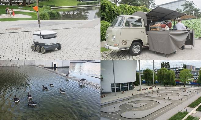 팁을 하나 더 드리자면 하절기 기준 저녁 8시 이후에는 아우토슈타트는 누구나 들어올 수 있습니다. 파빌리온을 제외하면 어디든 다닐 수 있도록 개방해 놓았죠. 그래서 그런지 시내에서 저녁을 먹고 이곳으로 산책을 즐기러 오는 볼프스부르크 주민을 꽤 많이 볼 수 있었습니다. 독일의 긴 여름 저녁, 기분 좋게 마무리할 수 있는 좋은 방법이 아닌가 싶었습니다.