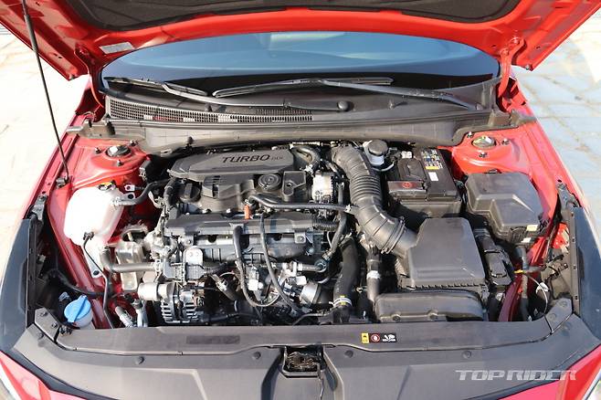 아반떼 N라인의 1.6리터 터보 엔진에는 연속 가변 밸브 듀레이션(CVVD)이 적용됐다. 현대차가 세계 최초로 개발한 CVVD는 밸브 열림 시간을 제어해 성능과 연비를 모두 높였다. 엔진 내구성, 가속 성능을 개선한 통합 열관리 시스템(ITMS)도 탑재됐다.