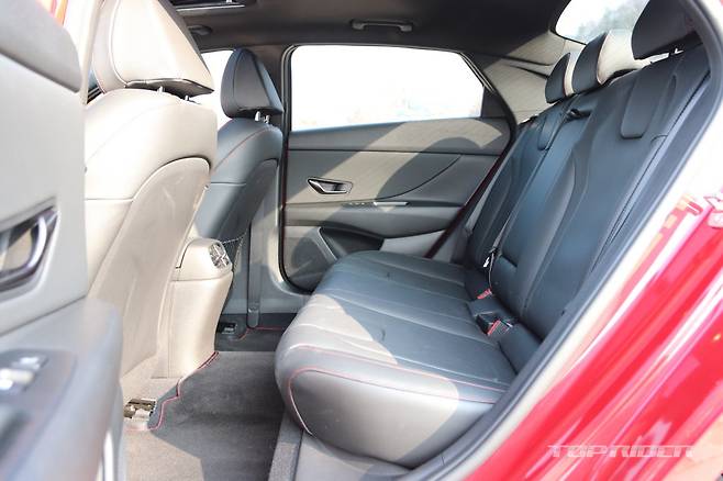 후면부는 스포일러와 싱글 트윈팁 머플러, 수평 구조의 와이드한 리어 디퓨저로 역동적인 이미지를 구현했다. 실내에는 레드 스티치 가죽 시트, 가죽 스티어링 휠, 기어노브 등 N라인 전용 디자인과 메탈 페달 및 풋레스트 등을 통해 스포티한 감성을 높였다.