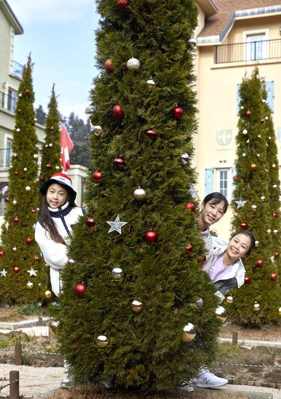 여행에서 빠트릴 수 없는 게 바로 사진 촬영입니다. 눈으로만 모든 걸 담기엔 역부족이죠. 추억을 기록하고 내가 이곳에 왔다는 걸 인증하기 위해서도 중요합니다. 에델바이스 스위스 테마파크는 어떤 위치에서, 어느 각도로 카메라를 들이대도 한 장의 그림이 완성되기 때문에 사진 찍기 좋아하는 사람들에게 최적의 장소죠. 특히 유럽 느낌의 사진을 원한다면 절대 놓치지 말아야 할 포토존이 바로 분수 광장이에요. 유럽의 관광지를 걷다 보면 이런 분수대가 꼭 하나 정도 나오는데요. 뒤편에 있는 대형 크리스마스트리와 아름다운 조경까지 아기자기한 사진을 찍기 좋아요. 입구에 있는 근위병 조형물과 인증샷도 잊지 마세요.