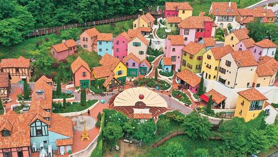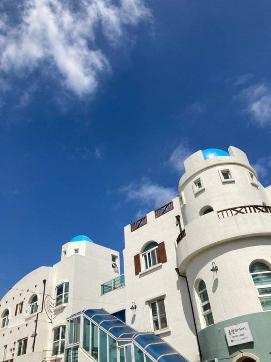 파스텔 톤 바다와 하얀색 지붕으로 세계인을 매료한 그리스 산토리니를 옮겨놓은 곳. 여기에 프로방스와 파르테논 양식도 만날 수 있습니다. 마을의 주요 도로를 사이에 두고 남서쪽은 프랑스 남동부 프로방스풍으로 꾸며 붉은 지붕의 성곽 형식이 두드러집니다. 남동쪽은 산토리니가 모델로 원형의 파란 지붕과 하얀 벽이 화사하죠. ‘천사의 날개’나 등대 모양으로 된 빨간 우체통은 지중해 마을에서 가장 인기 있는 포토존입니다. 모두 66동의 건물이 있는데 각 동의 1층에는 상가가 들어섰고, 2층은 문화예술인을 위한 임대 공간, 3층은 마을 주민들의 주거 공간으로 이용됩니다.