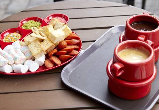 열심히 관광하고 사진도 찍었으니 이제 현지 음식을 만날 차례. 소중 학생기자단은 스위스 전통 음식 퐁듀를 먹어보기로 했죠. 퐁듀는 작은 항아리에 치즈나 초콜릿을 녹여 여기에 각종 음식을 찍어 먹는 알프스 지역의 전통 요리입니다. 스위스에 여행을 가면 꼭 한 번 먹어보는 음식이죠. 유럽의 노천카페 같은 분위기를 자아내는 야외 테라스에 앉아 퐁듀 체험을 했어요. 초콜릿‧치즈에 마시멜로, 빵, 막대 과자를 찍어 먹으니 환상의 조합이었죠. 학생기자단은 “너무 맛있어요”라고 외치며 허겁지겁 먹었습니다. 김윤하 학생기자는 “스위스에서 먹은 퐁듀는 맛이 없었는데 지금 먹은 건 너무 맛있어요”라고 얘기했죠. 배도 부르고 슬슬 여행을 마무리하고 집으로 돌아가야 할 때입니다. 잠시나마 스위스에 온 듯한 기분을 만끽할 수 있어 행복한 시간이었죠.