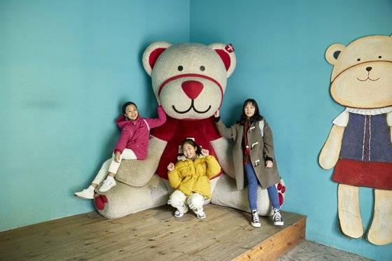 365일 크리스마스트리가 반짝반짝 빛나는 모습을 볼 수 있는 산타 빌리지 테마관에서는 미리 크리스마스 기분도 낼 수 있었고, 러브 프러포즈 테마관에서는 소망을 적은 소원 종이를 직접 달 수도 있었습니다. 베른 베어 테마관에는 스위스의 수도 베른의 상징인 곰을 테마로 어른 키가 부쩍 넘는 거대한 곰인형이 전시돼 있고요. 2층으로 올라가면 비치해 둔 인형 탈을 쓰고 사진을 찍을 수 있어 인기가 많았죠.