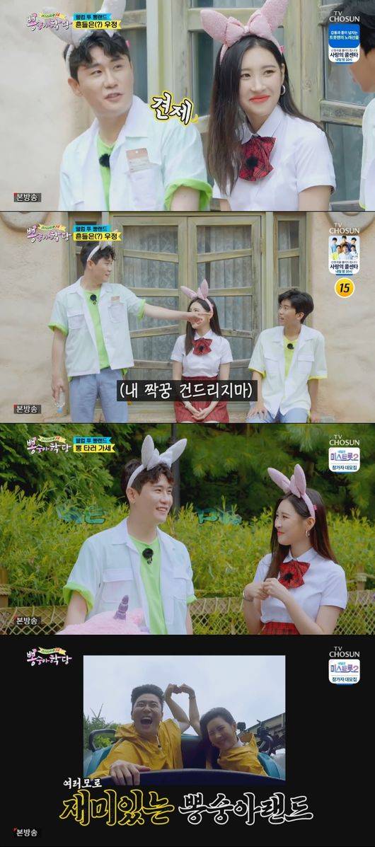 선미는 계속해서 영탁을 짝꿍으로 선택했다. 임영웅은 놀이동산의 명물 ‘아마존댄스’를 선보이며 선미의 마음을 돌리기 위해 애썼지만 영탁을 이기지는 못했다. 영탁은 선미와 놀이기구에서 예쁜 하트를 그리며 포토제닉상을 획득, 놀이공원 연간 이용권을 얻어냈다. /elnino8919@osen.co.kr