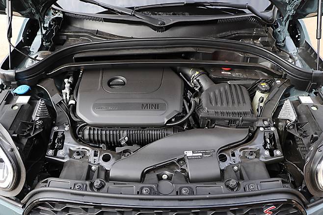 파워트레인은 가솔린이 1.5리터 직렬 3기통 쿠퍼와 2.0리터 쿠퍼 S가 있고 디젤은 2.0리터에 110마력, 140마력 두 가지, 그리고 고성능 버전 JCW의 2.0리터 225마력 사양 등이 있다. 시승차인 쿠퍼 S는 1,998cc 직렬 4기통 트윈 터보 가솔린으로 최고출력 192마력, 최대토크 28.55kgm을 발휘한다.