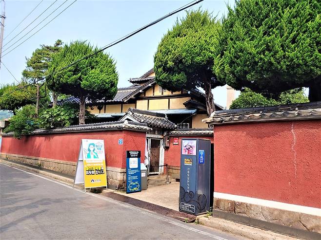 | ▲ 히로쓰 가옥 입구 군산에서 포목점 등을 운영하며 많은 부를 축적, 군산 상권을 쥐락펴락하던 일본인 상인 히로쓰라는 자가 살던 가옥이다. 대체로 원형이 잘 보존되어 있어 드라마나 영화의 촬영지로도 쓰이곤 한다. 촬영 당시는 코로나19로 출입이 폐쇄되어 있었다. |