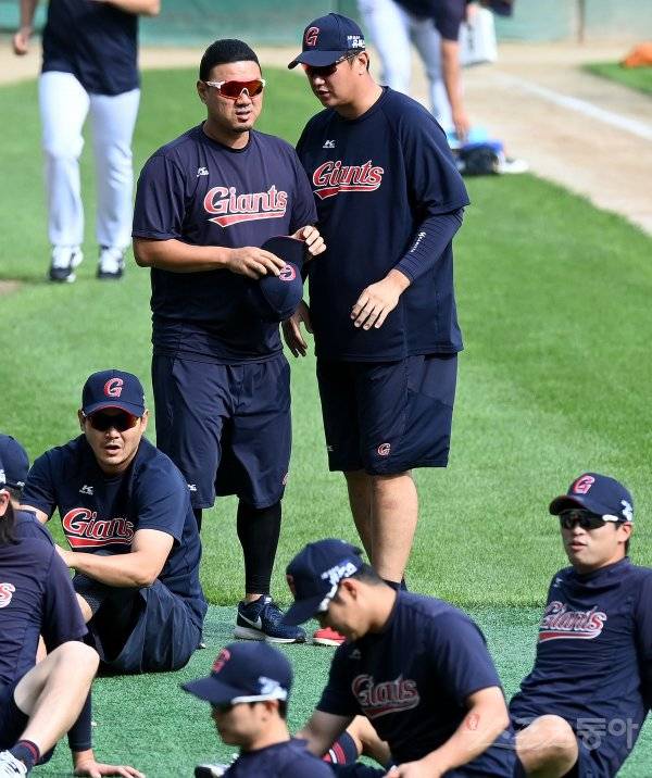 송승준-이대호 '롯데 투-타 최고참의 만남!' [포토]