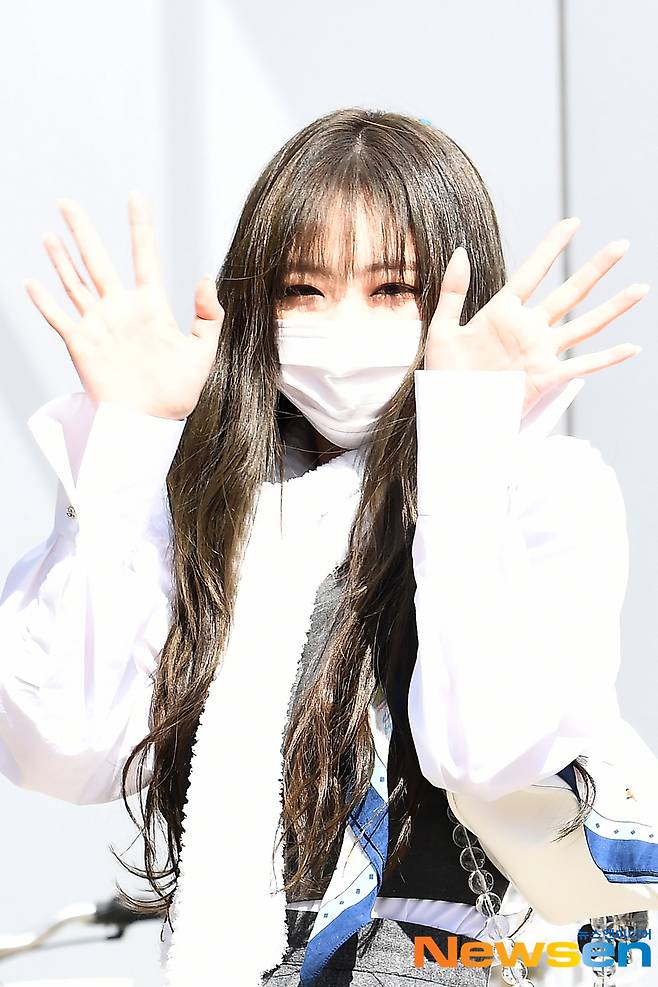 블랙핑크(BLACKPINK) 멤버 제니가 출근하기 전 포즈를 취하고 있다.