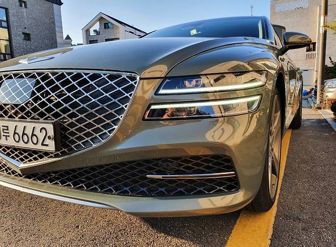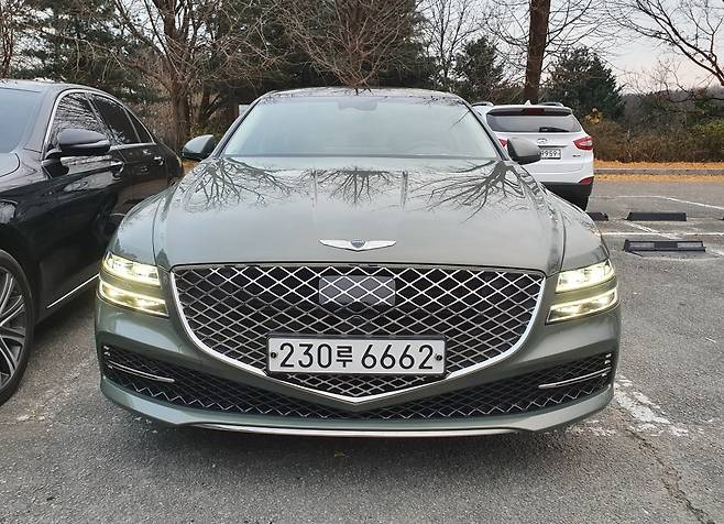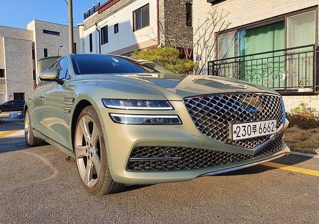 제네시스 G80 '핀도스 그린' 컬러[M 오토데일리 차진재 기자] 제네시스 G80의 핀도스 그린 컬러가 11월 단종 확정되며 신규 계약이 종료됐다.