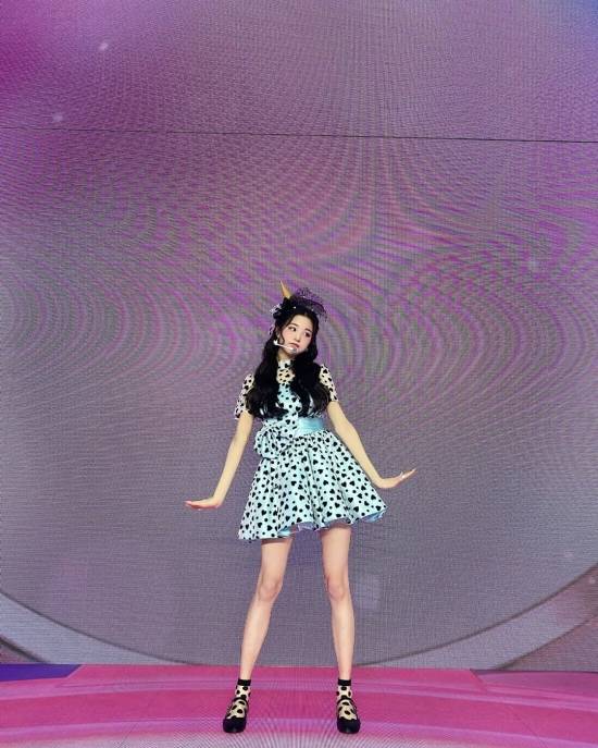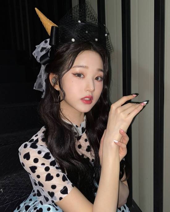 아이즈원 장원영의 미모와 비율이 눈길을 끈다.