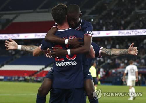 epa08674465 Paris Saint Germain's Julian Draxler celebrates scoring the opening goal during the French Ligue 1 soccer match between Paris Saint Germain and FC Metz, in Paris, France, 16 September 2020. EPA/IAN LANGSDON
