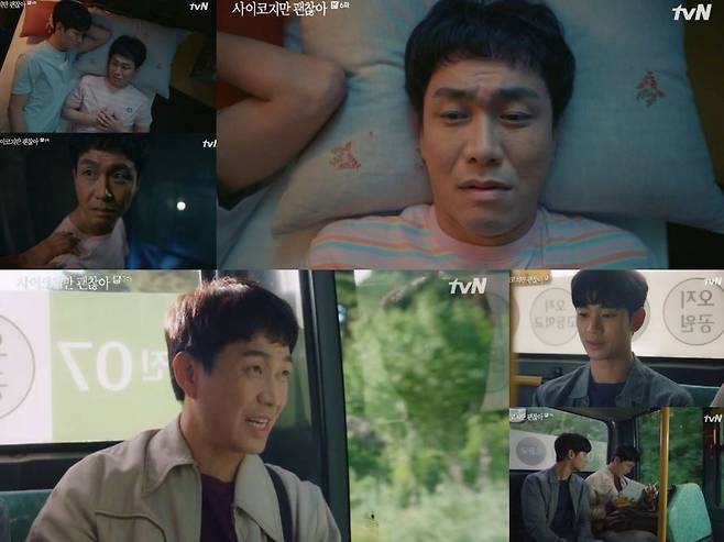 한편, 버거운 삶의 무게로 사랑을 거부하는 정신 병동 보호사 문강태와 태생적 결함으로 사랑을 모르는 동화 작가 고문영이 서로의 상처를 보듬고 치유해가는 한 편의 판타지 동화 같은 사랑에 관한 조금 이상한 로맨틱 코미디 드라마인 tvN 토일드라마 ‘사이코지만 괜찮아’는 9회는 18일 밤 9시 방송된다.