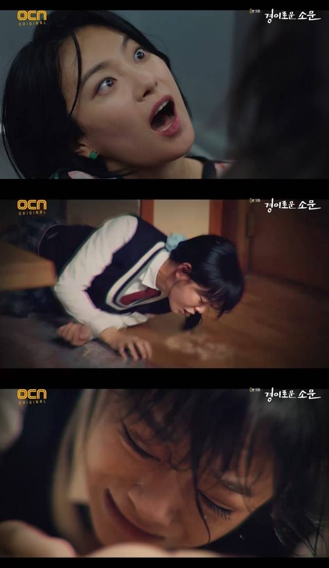 도하나의 아픈 과거사가 드러나며 안타까움을 더한 대목. 이후 도하나는 철거를 앞둔 옛 집을 찾아갔다가 가출 자매를 만났고, 가모탁은 철거 깡패들을 통해 7년 전 제 과거와 마주하며 새로운 전개가 펼쳐졌다. (사진=OCN ‘경이로운 소문’ 캡처)