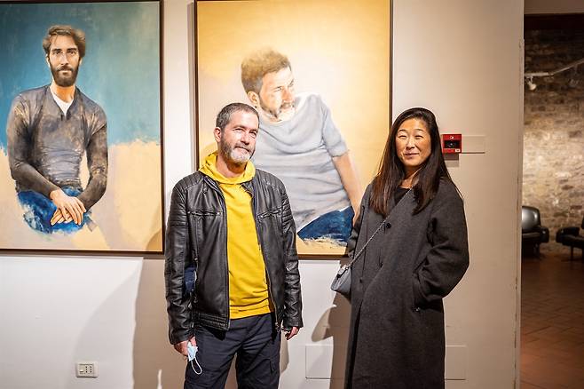 | ▲ 파올로 메오니 이탈리아 사진작가 (왼쪽)와 문선희 작가 (오른쪽) 문선희 작가의 '수염난 남자 초상 시리즈’ 총 12점중 <파올로 Paolo> 작가 노트: "남성의 상징인 수염에서 비롯된 이 시리즈는 초상화 작업을 통해 남성의 우주를 읽고 해석하고자 하는 의도로 시작되었다. 여성의 관점에서, 주의깊게 대상을 선정해가며 이루어진 이 작은 프로젝트의 결과는 호기심, 연약함, 내향성과 관대함 같은 집단적 상상 속에서는 통상적으로 남성의 세계와 좀처럼 연관되지않던 감정과 생각의 우주를 제게 열어주었다.”문선희 작가는 10월 24일~11월 22일 타르첸토 소재 프란지파네 관 (Palazzo Frangipane)에서 프랑코 치오트, 다니엘라 다즈 모레티와 함께 3인전 <옛적에 초원이 있었다>에도 참가할 예정이다. |