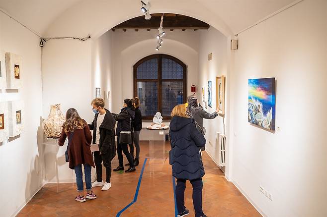 | ▲ 피렌체 전시회 전경 프랑코 마르가리 단테의 집 예술인협회 회장은 이번 전시회는 “우리의 사고의 지평을 확장시키는 참으로 맛깔나는 전시회”라고 운을 뗀 뒤, “깊은 사유를 반추시키는 작품들, 한국 전통의 특별한 제작방식으로 만들어진 한지 작품들, 정교한 테크닉으로 작가의 내면을 표현한 놀라운 수준의 대리석 조각을 포함하여 모든 작품에서 섬세한 서정을 깊이 느낄 수 있다”고 말했다. |