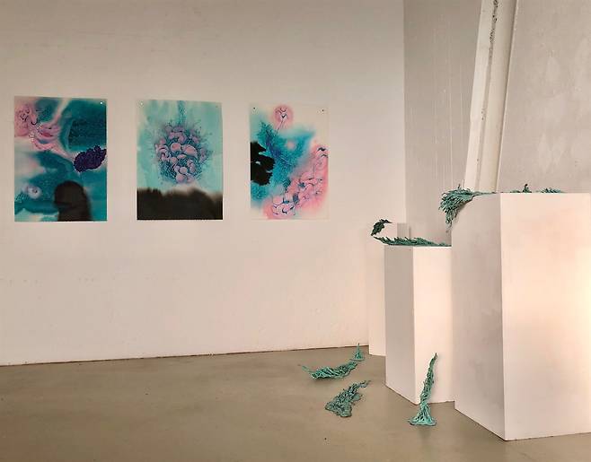 임종훈 작가는 본 전시에서 <가역성 시리즈>라는 제목의 아크릴잉크 회화와 브론즈조각 <눈물모양의 가시>를 선보이며, '헤르마프로디토스와 인공물'이라는 키워드를 통해 파생된 연상을 보여주었다.