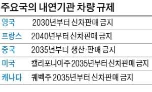 미국 캘리포니아주와 캐나다 퀘벡주는 2035년, 노르웨이는 2025년부터 각각 내연기관 차량의 판매 중단한다는 계획이다.
