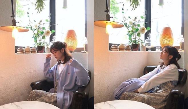 사진에는 가을 향기가 물씬 풍기는 원피스와 카디건으로 멋을 낸 정소민이 카페로 보이는 장소에 앉아있는 모습이 담겨있다.