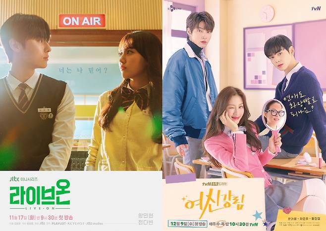 이에 힘입어 최근에는 교복을 입은 인물들이 다수 등장하는 드라마가 인기리에 방영되고 있다. 17일 방송을 시작한 JTBC '라이브온'(방유정 극본, 김상우 연출)은 워너원과 뉴이스트로 10대들에게 이미 유명한 황민현과 '인간수업'으로 상승세를 쳤던 정다빈이 주인공을 맡은 작품. 두 배우 모두 드라마 주인공은 처음인데다 황민현은 방송 연기 자체가 처음이지만, 첫 방송 이후 '내용이 흥미롭다'는 평을 받으며 시청자들의 시선을 잡았다.