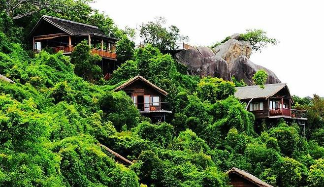 중국 하이난성 싼야시 야롱만에 위치한 열대천당삼림공원은 중국 영화배우 서기(舒淇)가 출연한 영화 <쉬즈 더 원2> 촬영지로 유명하다. 하이난성 최초의 해안산지 생태관광, 생태 레저삼림공원이다. 이곳에서 캠핑하면 원시생활을 체험하며 ‘열대우림의 숨결’을 느낄 수 있는 게 매력이다. 덤으로 다양한 종류의 식물, 곤충, 동물을 만날 수 있다. 우기인 7~9월만 제외하면 사계절 모두 캠핑과 차박에 안성맞춤이다.