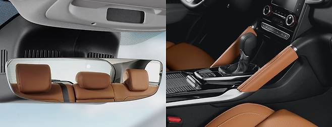 실내는 몇몇 장식과 기능 차이만 있다. 갈색 가죽 시트는 화사한 분위기를 만든다. 베젤이 거의 없어 깔끔한 프레임리스 룸미러는 추가 옵션인데, 하이패스 카드가 아닌 전용 유십칩을 넣는다. 이제 공조기를 끄기 위한 복잡한 과정은 필요 없다. 그냥 오토 버튼을 한 번 더 누르면 끝이다. 사실 당연한 기능인데 이제야 생겼다. 컵홀더는 작게 4개로 나눴는데, 큰 컵을 꽂기 어려워 보인다.