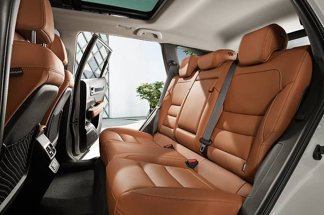 뒷좌석은 센터 터널이 낮아 3명이 타기에 좋다. 키 173㎝ 기자 기준으로 무릎 앞에 주먹 두 개 반 정도 공간이 남는다. 널찍한 파노라마 선루프는 개방감을 높인다. 2열 공조기, A-타입 USB 2개, 2단계 열선 등의 편의 옵션도 풍부하다. 뒷좌석 등받이 각도 조절도 가능한데, 범위가 큰 편은 아니다.