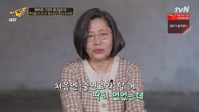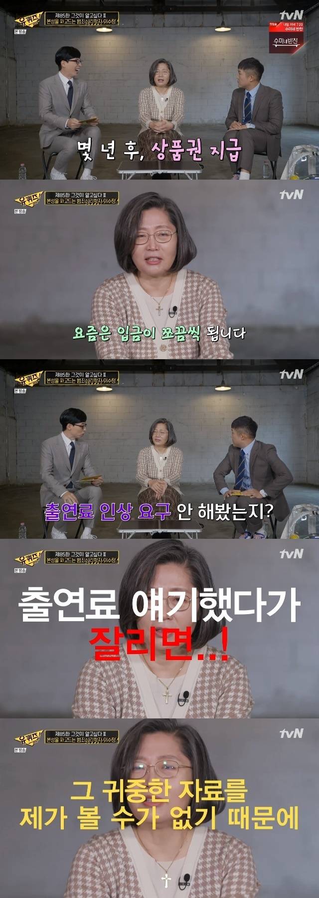 '유퀴즈' 이수정 교수 "'그알' 출연료 無→상품권→요즘은 조금씩 입금 돼"