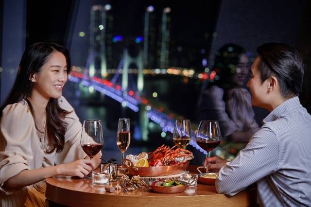 파크 하얏트 부산 호텔 32층에 위치한 다이닝룸의 프라이빗한 공간에서 즐기는 '페스티브 디너 코스'는 오는 24~25일 이용 가능하며, 로제 & 로제 스파클링 와인 프로모션은 오는 18~31일까지 이용할 수 있다.