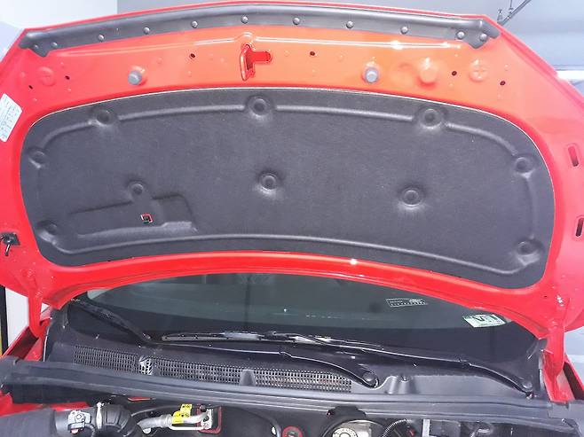 먼저 후드 인슐레이션 패드는 고정핀(리테이너)과 함께 구매를 해야 한다. 10개의 고정핀을 부착해야 완전히 고정되는 방식이다. 엔진 후드을 열고 구매한 인슐레이션 패드는 엔진 후드 안쪽의 철제 부분 모양에 맞게 걸쳐 봤다. 후드 안쪽 굴곡에 맞게 제작된 것이라 고정핀을 고정할 구멍도 함께 보였다. 이후 구매한 고정핀 10개를 모두 고정하면 끝이다. 후드 인슐레이션 패드의 목적은 엔진룸 내에서 발생하는 열과 소음이 실내로 침투되는 것을 차단하는 것이다. 물론 큰 기대를 하면 안된다. 전후 미묘한 차이는 있지만 큰 차이는 없었다.