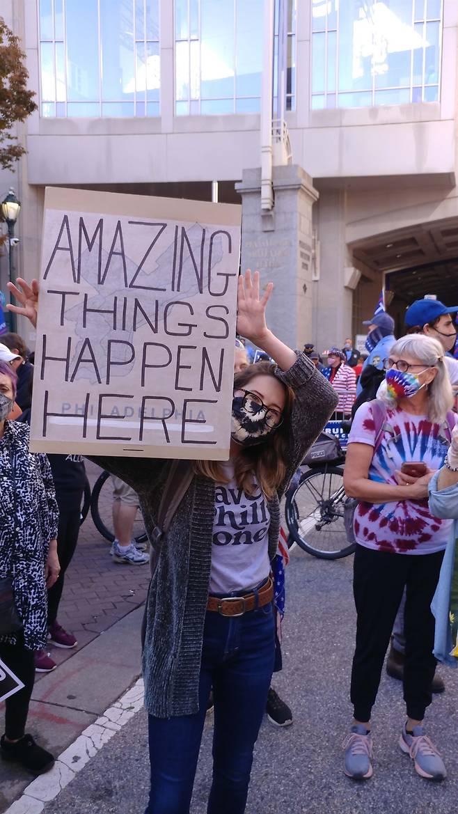 선거 나흘째인 11월 6일(현지시간), 거대한 축제장 같기도 하고 정신없는 도떼기시장 같기도 한 이 곳은 펜실베이니아 컨벤션센터 앞이다.