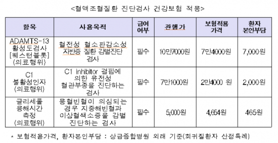 우선 류마티스 관절염 조기 진단을 위한 항CCP항체검사와 혈액조혈질환 검사 3종에 대해 건강보험이 적용된다. 검사비는 기존 비급여 4만6000원에서 보험 적용 후 외래 기준 7000원 안팎으로 급감한다. 혈액조혈 관련 희귀질환의 진단을 위한 검사 3종의 검사비도 최대 10만원 줄어든다.