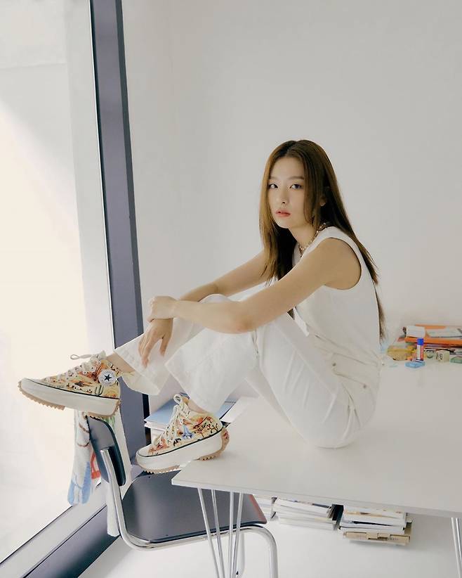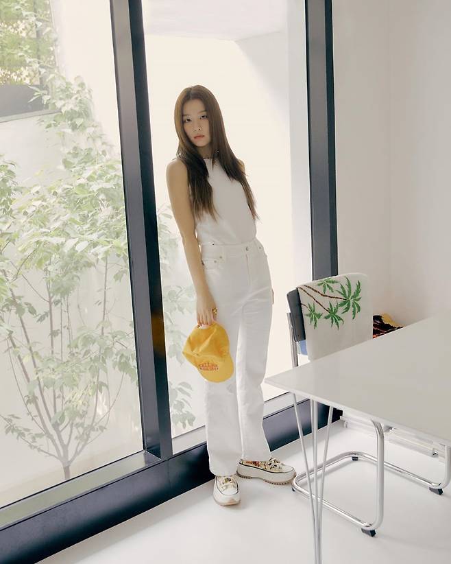 공개된 사진 속 슬기는 화이트 톤의 방 안에서 포즈를 취하고 있다.