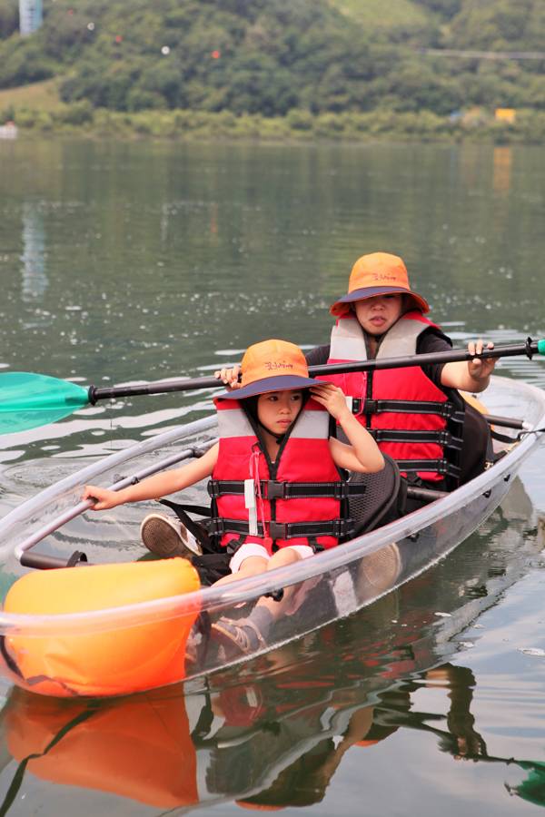750m의 허공을 날아서 안전하게 한반도섬에 착지한 후에는 레저보트를 골라 탔다. 누군가는 페달을 밟고 나가는 수상자전거를 선점했고, 투명카약은 꼬마들도 물 바깥을 잘 내다볼 수 있어서 좋았다. 더 큰 아이들은 혼자서도 용감하게 카약을 타고 항해에 나섰다. 만사 귀찮아하던 어른들은 한국에서 단 한 대밖에 없다는 태양열 보트에 몸을 싣고 한반도섬을 휘휘 한 바퀴 유람하고 왔다. 제주도, 울릉도, 독도까지 15분이면 족했다.