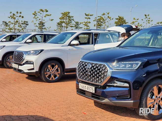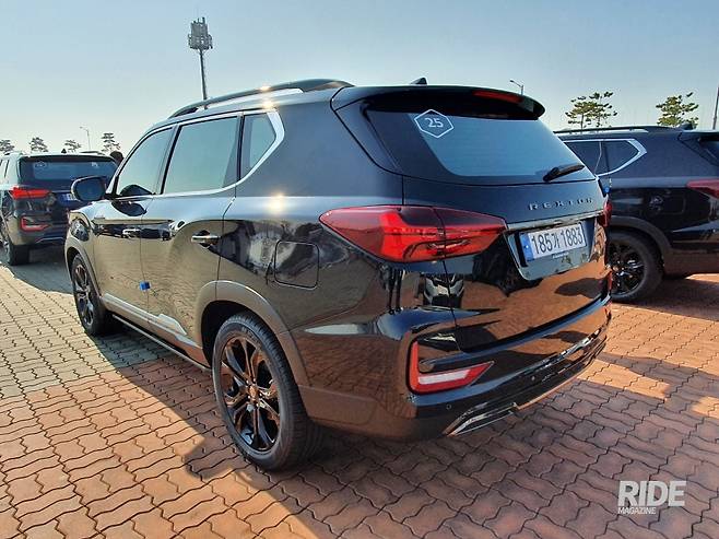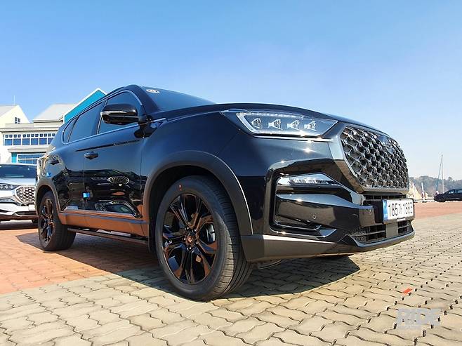 시승차로 배정받은 올 뉴 렉스턴의 가장 상위 트림인 ‘더 블랙’ 모델은 출시 전 사진만으로도 사람들의 시선을 잡아 끌만큼 디자인적으로 좋은 평가를 받았는데 실제로 봐도 전작과는 비교할 수 없을 만큼 디자인적으로 많은 개선이 이루어졌다. 이 정도라면 디자인으로 경쟁모델들과 충분히 경쟁 할 수 있을 정도라 하겠다. 더 블랙 보다 한단계 낮은 트림인 프레스티지에 7가지 컬러가 있다고 했고 시승회에 다른 컬러도 몇 개 모델이 있었지만 가장 잘 어울리는 컬러는 단연 블랙임을 알 수 있었다. 어떤 이는 올 뉴 렉스턴의 디자인을 두고 블랙 컬러를 위한 디자인이라고 말할 정도로 더 블랙의 느낌은 좋았다.