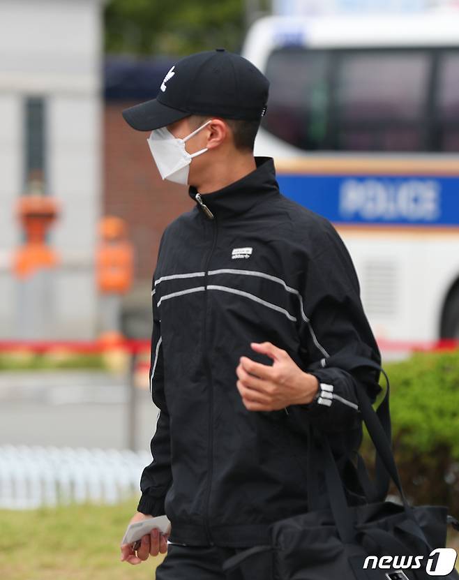 (진해=뉴스1) 여주연 기자 = 배우 박보검이 31일 경남 창원시 진해 해군교육사령부 해군기초군사교육단에 입소하고 있다. 해군병 669기 교육 과정에 입소하여 6주 동안 기초 훈련을 받게 된다. 현재 해군 기초 훈련은 입영주 포함 5주이나, 8월31일 입영 장병부터는 훈련 기간이 6주로 늘어난다. 2020.8.31/뉴스1