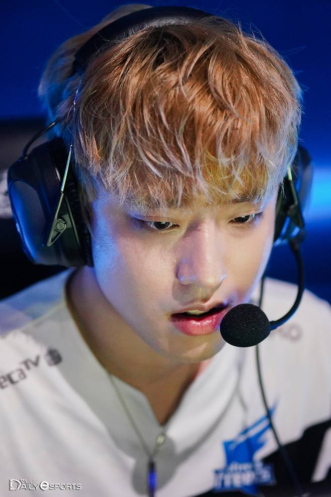 아프리카 원거리 딜러 '미스틱' 진성준이 매서운 표정으로 다이나믹스전에 임했다. 진성준은 1세트에서 애쉬를 선택했다.