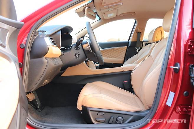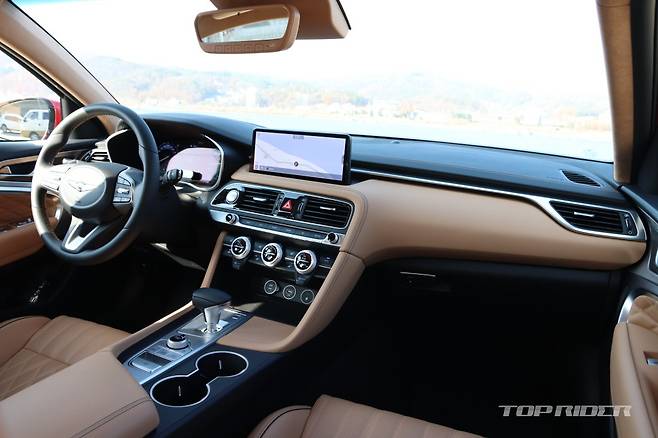 실내 레이아웃은 기존과 같다. 10.25인치 인포테인먼트 시스템과 충전 속도가 향상된 스마트폰 무선충전 시스템이 새롭게 적용됐다. 또한 윈드실드 글라스와 1열 창문에 이중접합 차음유리가 기본 제공돼 고속주행에서도 풍절음이 기존 모델보다 더 적게 실내로 유입된다.