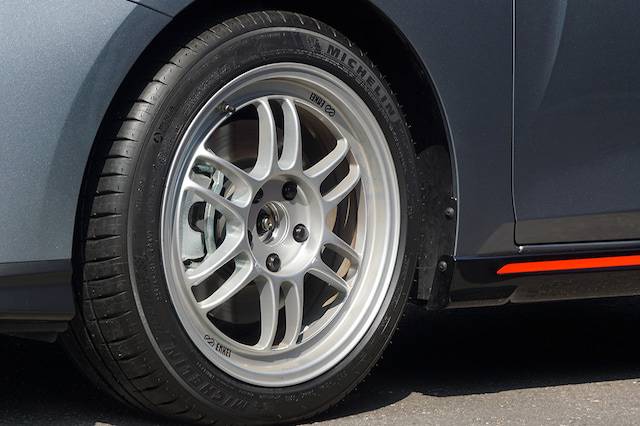 벨로스터의 18인치 휠은 림 폭이 7.5인치이고 옵셋은 +53입니다. 무게는 11.2kg입니다. 제가 선택한 휠은 엔케이의 레이싱 RPF1 17인치입니다. 아는 사람들은 아는 초경량 휠입니다. F1 휠의 레플리카 디자인, 압도적인 경량, 그러면서도 우수한 강성을 품습니다. 림 폭은 8인치, 옵셋은 +45로 선택. 무게는 실측 7.2kg입니다. 네, 무려 바퀴 당 4kg씩 감량한 것입니다. 게다가 휠 사이즈는 1인치 작아졌지요. 콧구멍을 벌름거리게 만드는 수치 아닌가요.