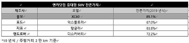 볼보자동차 프리미엄 중형 SUV XC60이 중고차 업체 엔카닷컴 조사 19년형 중대형 SUV 잔존가치 수입차 부문 1위에 올랐다.