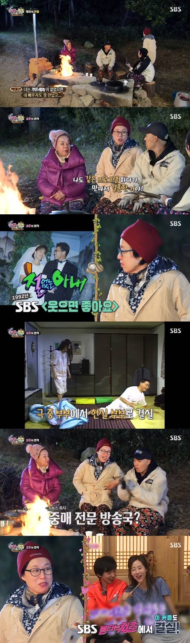 이에 강남은 "SBS가 결혼시키는 거 잘하나 보다"며 깜짝 놀랐다. 두 부부가 공통적으로 SBS에서 만난 사실을 캐치한 반응이었다. 그러자 박미선은 '불타는 청춘'으로 만난 김국진, 강수지 커플까지 떠올라곤 "SBS가 짱이다"고 말했다. 강남 또한 "SBS가 터가 좋구나"라며 감탄을 연발했다. (사진=SBS '정글의 법칙-족장과 헬머니' 캡처)