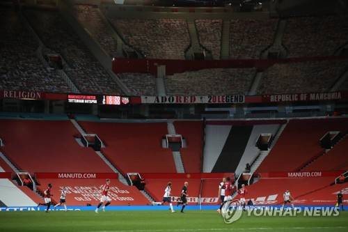 epa08720724 General view of the Old Trafford stadium during the English Premier League match between Manchester United and Tottenham Hotspur in Manchester, Britain, 04 October 2020. EPA/Carl Recine / POOL EDITORIAL USE ONLY. No use with unauthorized audio, video, data, fixture lists, club/league logos or 'live' services. Online in-match use limited to 120 images, no video emulation. No use in betting, games or single club/league/player publications.