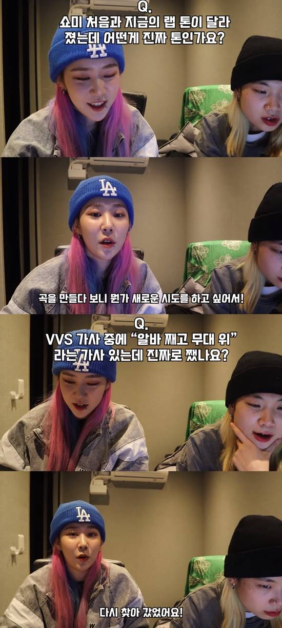 또한 미란이는 "'VVS' 속 '알바 째고 무대 위'라는 가사가 있다. 진짜 쨌느냐"는 질문에 대해 "진짜 째고 갔다. 그때 제가 주 5일 카페에서 일했는데 사장님한테 '한 번만 빼 달라'는 메시지를 굉장히 많이 보냈다. 나중에 사장님이 '너무 요청이 많다'고 하셨다"며 "이 자리를 빌려 그때 너무 힘들게 해서 죄송하다는 말씀드리고 싶다. 그러고 다시 찾아갔는데 "잘돼서 좋다"고 해주셨다. 정말 감사하다"고 밝혔다.