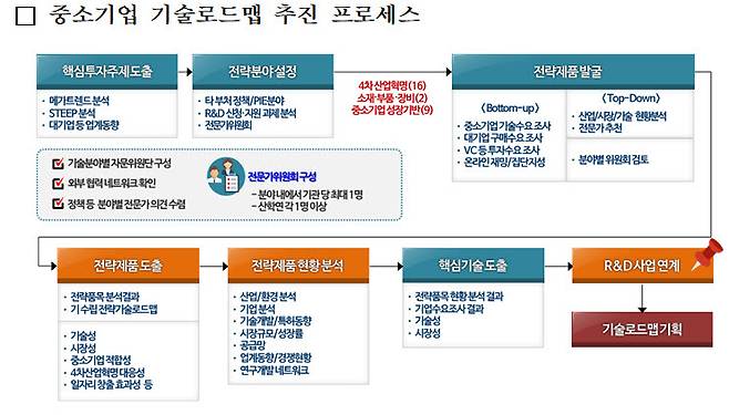 중소기업 기술로드맵은 최신 기술개발 트렌드 등을 종합 분석해 기술개발 필요성이 높은 유망기술과 전략제품을 선정해 중소기업 연구개발(R&D)의 투자 방향을 제시하는 기준이다.