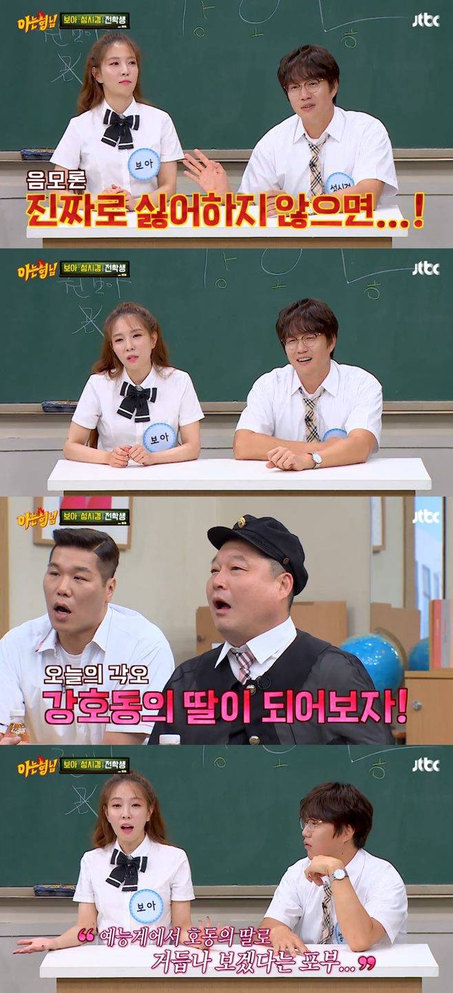 25일 밤 방송된 JTBC 예능프로그램 '아는형님'에는 아시아의 별 보아와 발라드의 황제 성시경이 전학생으로 등장했다.