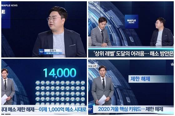 10일 넥슨은 오후 4시 ‘메이플스토리’ 공식 홈페이지와 유튜브 채널을 통해 온라인 쇼케이스 ‘메이플TV’를 개최하고 겨울 업데이트 ‘네오’의 상세 내용을 공개했다. 이날 ‘메이플TV’는 방송 컨셉트에 맞춰 ‘명탐정 페페’, ‘메이플이 알고싶다’, ‘2020 뷰티 어워즈’, ‘메이플 아틀리에’, ‘출발! 메이플 여행’, ‘입문 특강 2020 겨울 이벤트 실전 준비’, ‘메이플 뉴스’ 등의 프로그램을 구성하고 중간중간 넥슨의 주요 인기게임 광고를 삽입하는 형태로 꾸며 눈길을 끌었다.