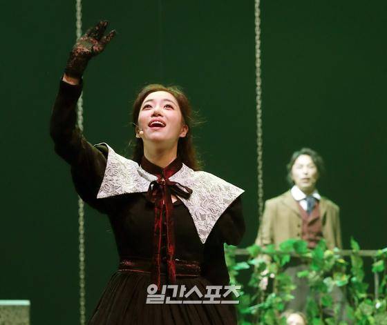 가수 겸 배우 함은정이 7일 오후 서울 서초구 예술의전당 CJ토월극장에서 열린 연극 '레미제라블' 초청 시연회에서 열연을 펼치고 있다.