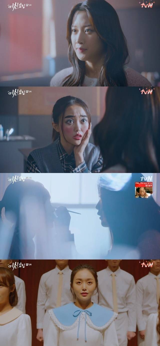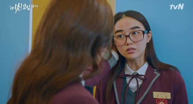 12월 23일 방송된 tvN 수목드라마 '여신강림'(연출 김상협, 극본 이시은) 5회에서는 임주경(문가영 분)이 자신의 과거를 꼭 닮은 1학년 한고운(여주하 분)을 우연히 만나 결정적인 순간 도움을 줬다.