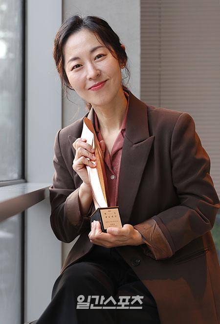 특별한 신인이다. 서른 살에 연기에 입문해 한국 나이로 마흔 셋이 되는 해에 백상예술대상 신인상 트로피를 품에 안았다. 이름처럼 맑은 앞날이 펼쳐진 배우 강말금(41)이다.지난 6월 열린 제56회 백상예술대상에서 영화 '찬실이는 복도 많지(김초희 감독)'로 영화 부문 신인상을 수상했다. 뭉근하게 졸여낸 딸기잼처럼, 은근하게 웃음을 선사하는 이 영화에서 능청스러운 연기로 주인공 찬실이를 표현했다. 실제로 찬실이라는 인물이 어딘가 살아 숨 쉬고 있을 것 같다는 믿음을 줄 만큼, 리얼한 생활 연기를 펼쳐 극찬받았다. 판타지적 요소 또한 가진 작품이지만, 현실에 발붙여 공감을 얻을 수 있었던 데에는 강말금의 생활 연기가 큰 공을 세웠다.대체 어디서 무얼 하다 이제서야 나타난 신인일까. 그 사연을 듣자면 영화 한 편, '인간극장' 뚝딱이다. 부산 출신으로 부산대학교 국어국문학과를 졸업했다. 대학교 시절 연극 동아리 회장을 맡았으며, 대학교 졸업 후에도 선뜻 배우가 되려는 결심이 서지 못해 매일 방황했다. 그러다 서른 살에 극단에 들어가 별별 일을 다 해봤고, 마흔 살에 '82년생 김지영' 김도영 감독의 단편 영화를 찍으면서 주목받기 시작했다. 그리고 만난 이가 찬실이다. 버텨내는 낮과 고민하는 밤을 10여년 보내고 나니 배우로 불릴 수 있게 됐다.강말금과 백상 이후 넉 달 만에 만나 술잔을 기울였다. 자서전 하나 나올 만큼의 서사를 가진 그이지만 알고 보면 그냥 옆집 언니다. "소주는 마치 헤어진 애인 같다"며 소주잔 비우기를 멈추지 않았고, "다이어트 해야 한다"면서 요즘 즐겨 하는 '홈트'를 소개했다. 얼마 전에 배우 배두나를 만나서 전화번호를 교환했다며 자랑했고, 동네 뒷산 산책의 즐거움에 관해 이야기하기도 했다. 마무리로는 연애 상담까지. 배우이자 옆집 언니 강말금과의 취중 수다는 밤까지 끝나지 않았다.