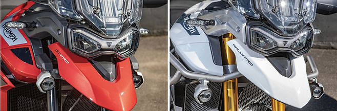 사이드 카울 : 랠리 프로는 전방 LED 방향지시등이 장착되는 사이드 페어링에 알루미늄 커버가 장착된다
